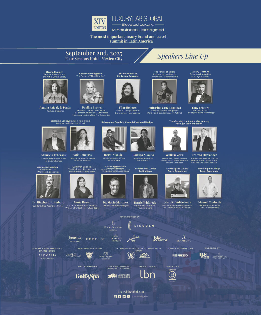 En su décimo cuarta edición, LuxuryLab Global, el foro más influyente en América Latina para el sector lujo, tendrá lugar en el prestigioso Four Seasons Hotel Mexico City, bajo el lema “Elevated Luxury: Mindfulness Reimagined”. Este tema invita a repensar el lujo como un espacio para la pausa, la creatividad, la reconexión humana y el pensamiento estratégico profundo en un mundo dominado por la velocidad y la tecnología.