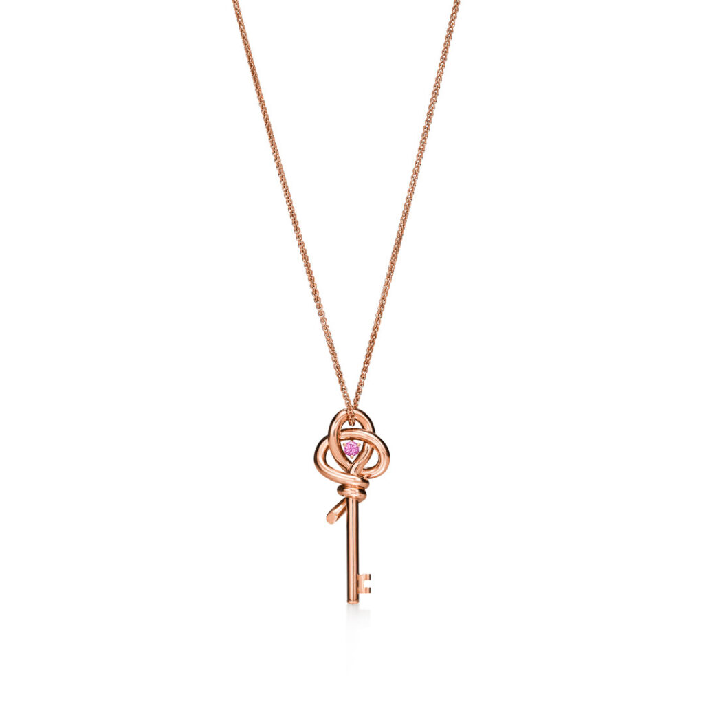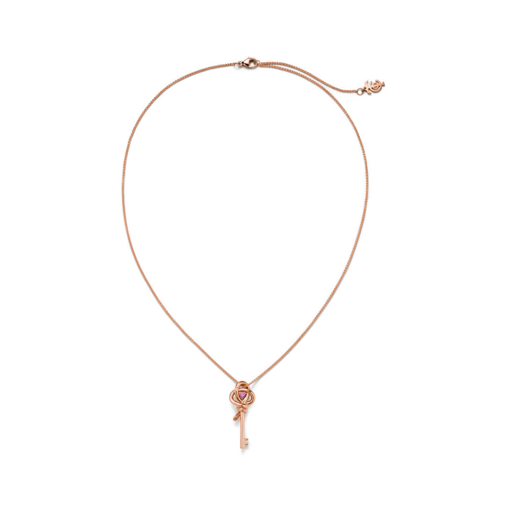 on motivo de la celebración del Año Nuevo Chino, Tiffany & Co. se complace en presentar el nuevo collar de llave Tiffany Knot en oro rosa de 18 quilates, engastado con un zafiro rosa.