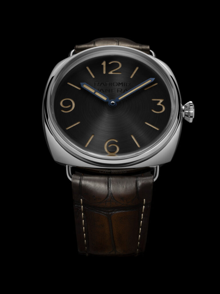 Este tono característico se consigue ahora mediante un proceso de oxidación controlada a unos 300 °C. El atractivo vintage de la esfera se acentúa con un cristal de PLEXIGLAS® abovedado, que evoca el diseño de los primeros relojes de buceo con esfera Radiomir luminiscente, desarrollados para la Armada Italiana.